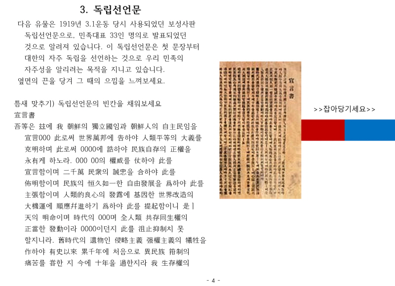 ■ 기획의도 : 독립기념관 2관, 3관 전시관을 돌아보며 역사적으로 아주 중요하지만 사람들이 잘 모르고 지나칠 수 있는 유물 5개를 골라 추려보았고, 이에 대한 사람들의 공감과 참여를 유도하기 위해 다양한 활동을 준비했다.