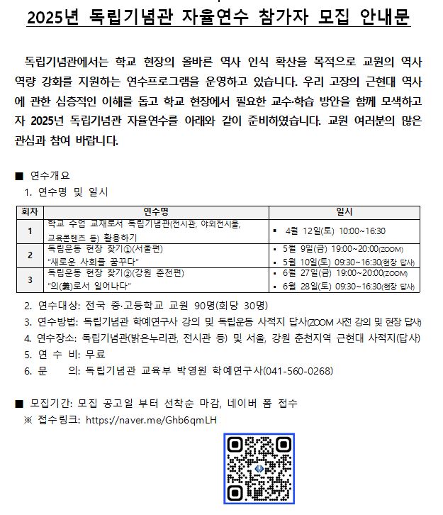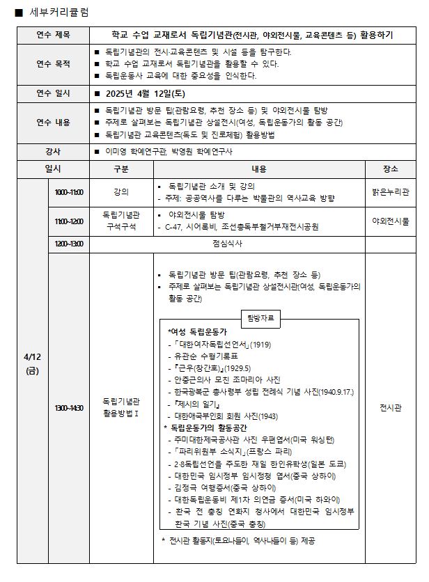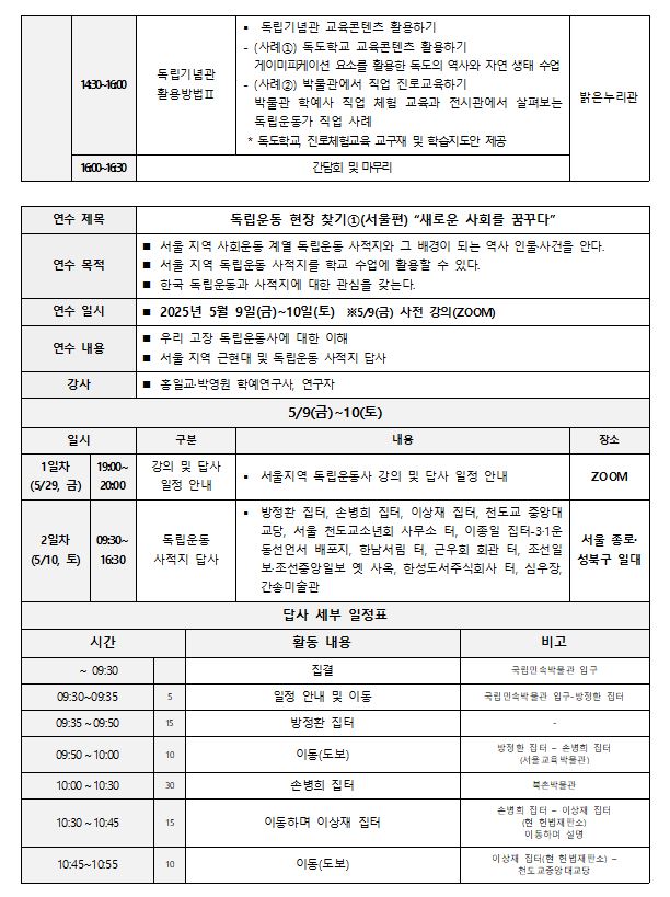 독립기념관(강의), 독립운동사적지(서울, 강원 춘천) 답사