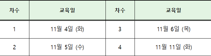 ○ 교육시간: 10:00~14:00(중식시간 포함 총 240분) ★교육시간 조정불가
