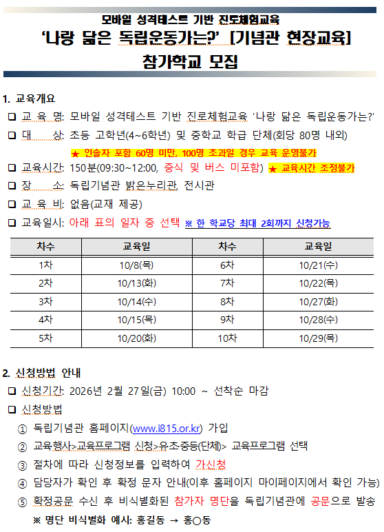 ※ 문의: 독립기념관 교육부 이재은 학예연구사(041-560-0263)