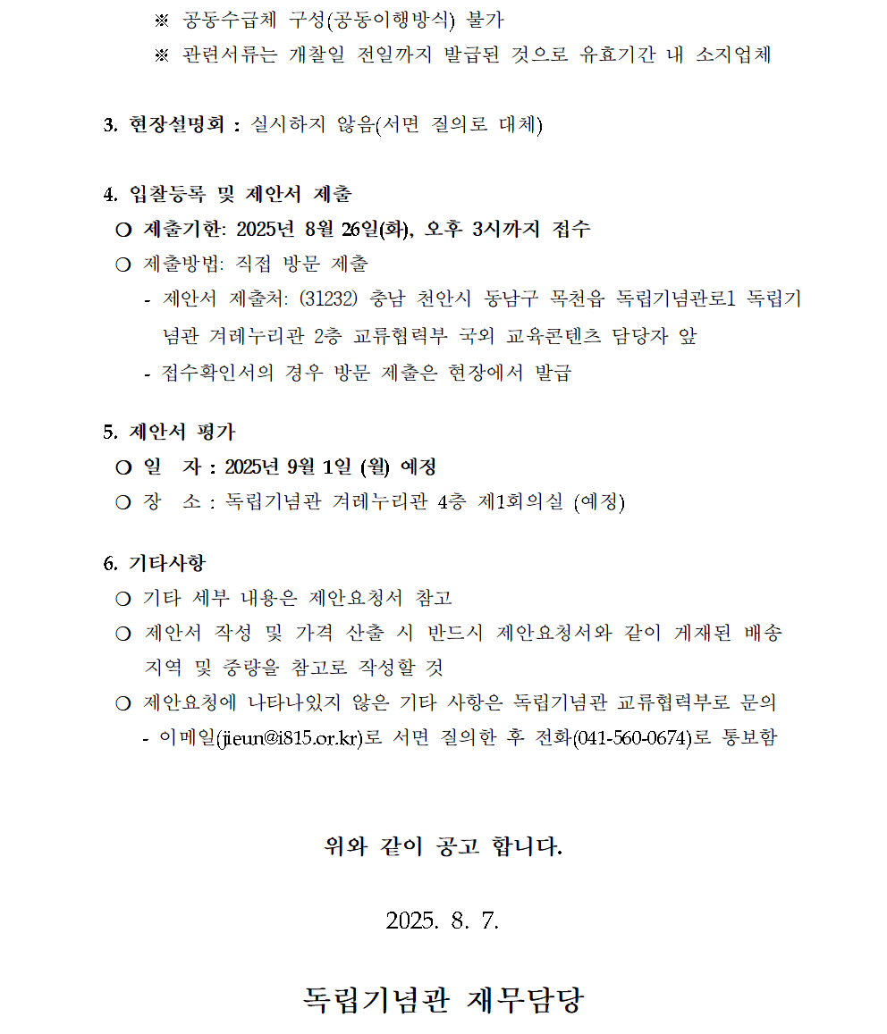 2025년 독립기념관 국외 교육콘텐츠 해외배송