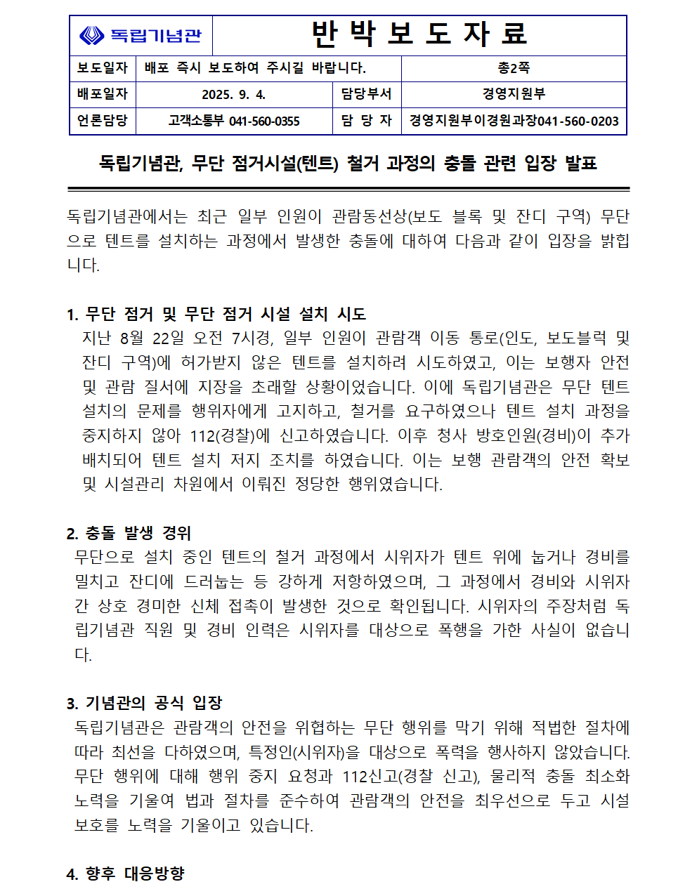 반박보도자료(20250903) 불법 점거과정에서 발생한 충돌 관련 입장