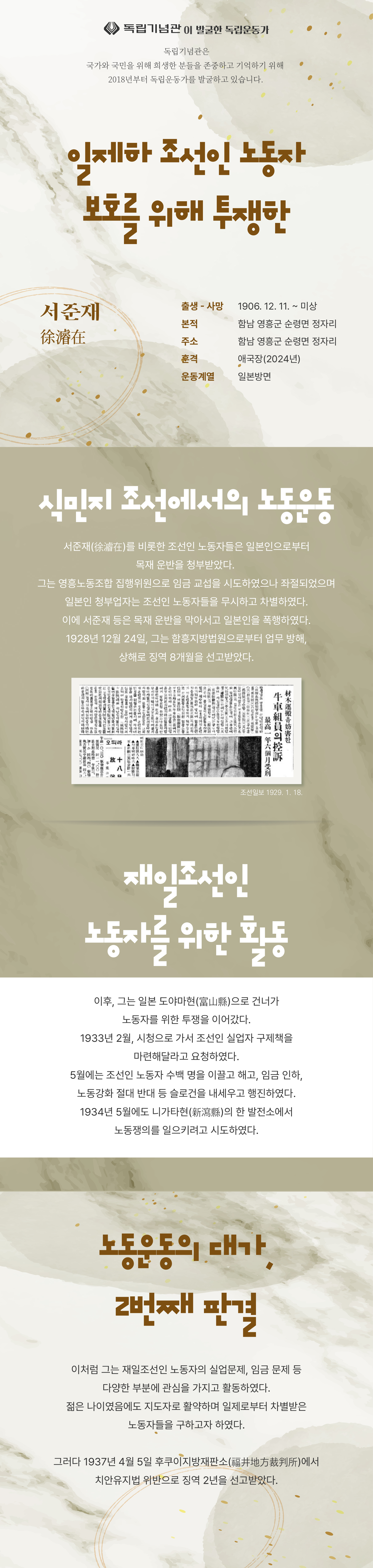 : 일제하 조선인 노동자 보호를 위해 투쟁한 서준재]