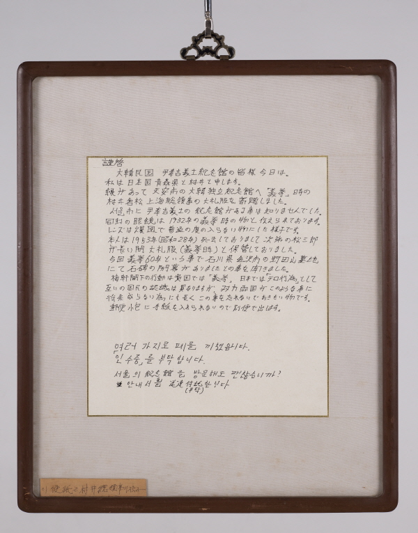 < 무라이 후손 편지(윤주 소장) >