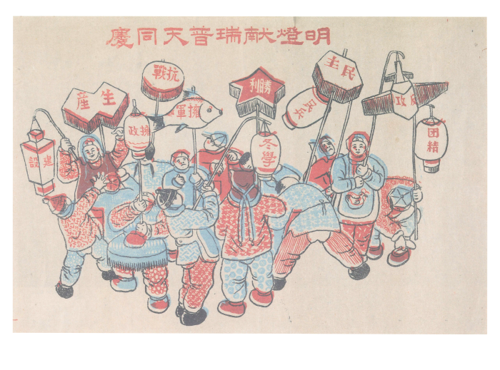 항일전쟁 승리 후 사람들이 빨간 축제 등불을 들고 승리를 기뻐하는 장면을 묘사하였다.