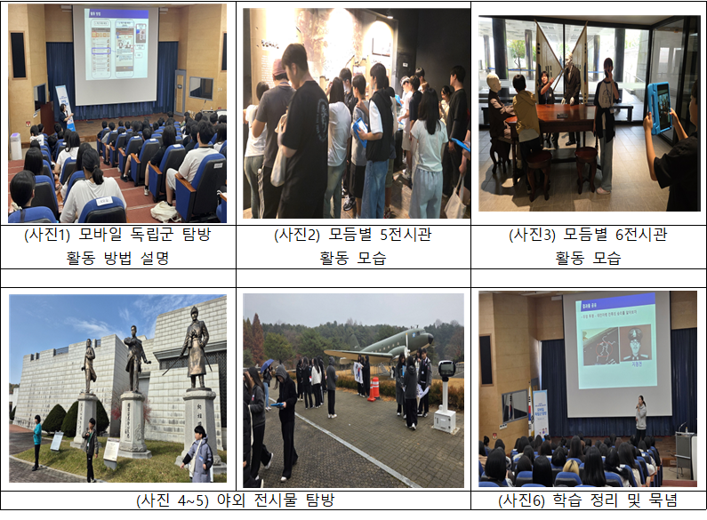 ○ 교육장소 : 독립기념관 밝은누리관 강당, 5·6전시관, 야외 전시물